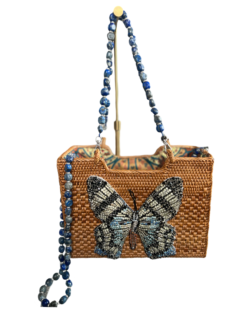 "Nature's Elegance redefined: Swarovski Butterfly with Lapis Lazuli Gemstone Handles and Shoulder straps .