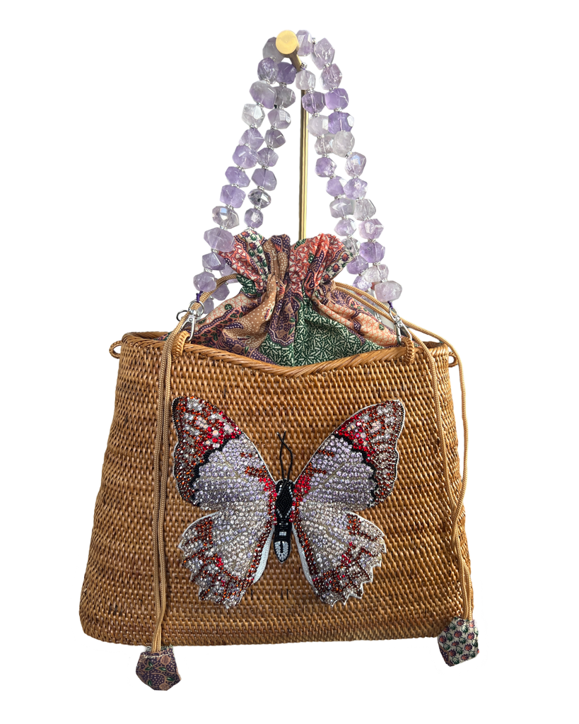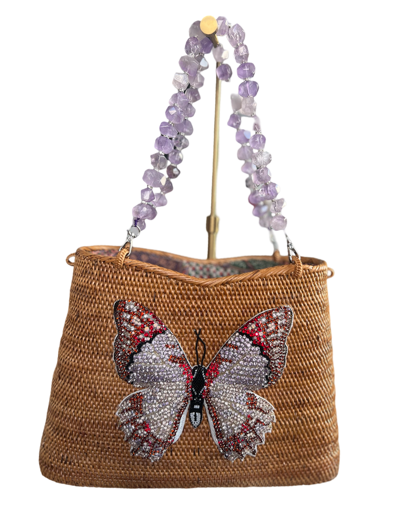 Swarovski Embroidered Butterfly with Amethyst Gemstone Handles Handbag