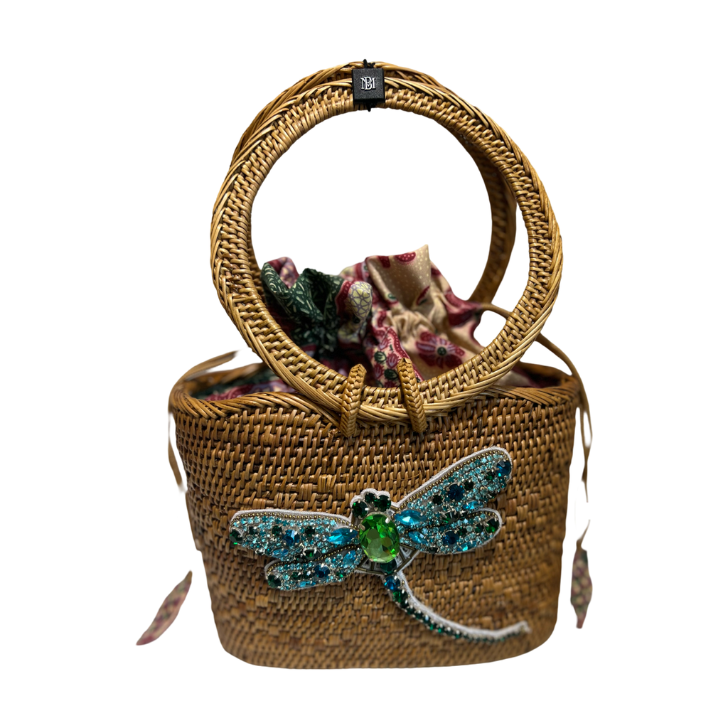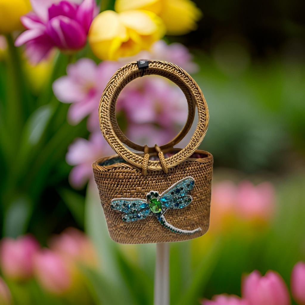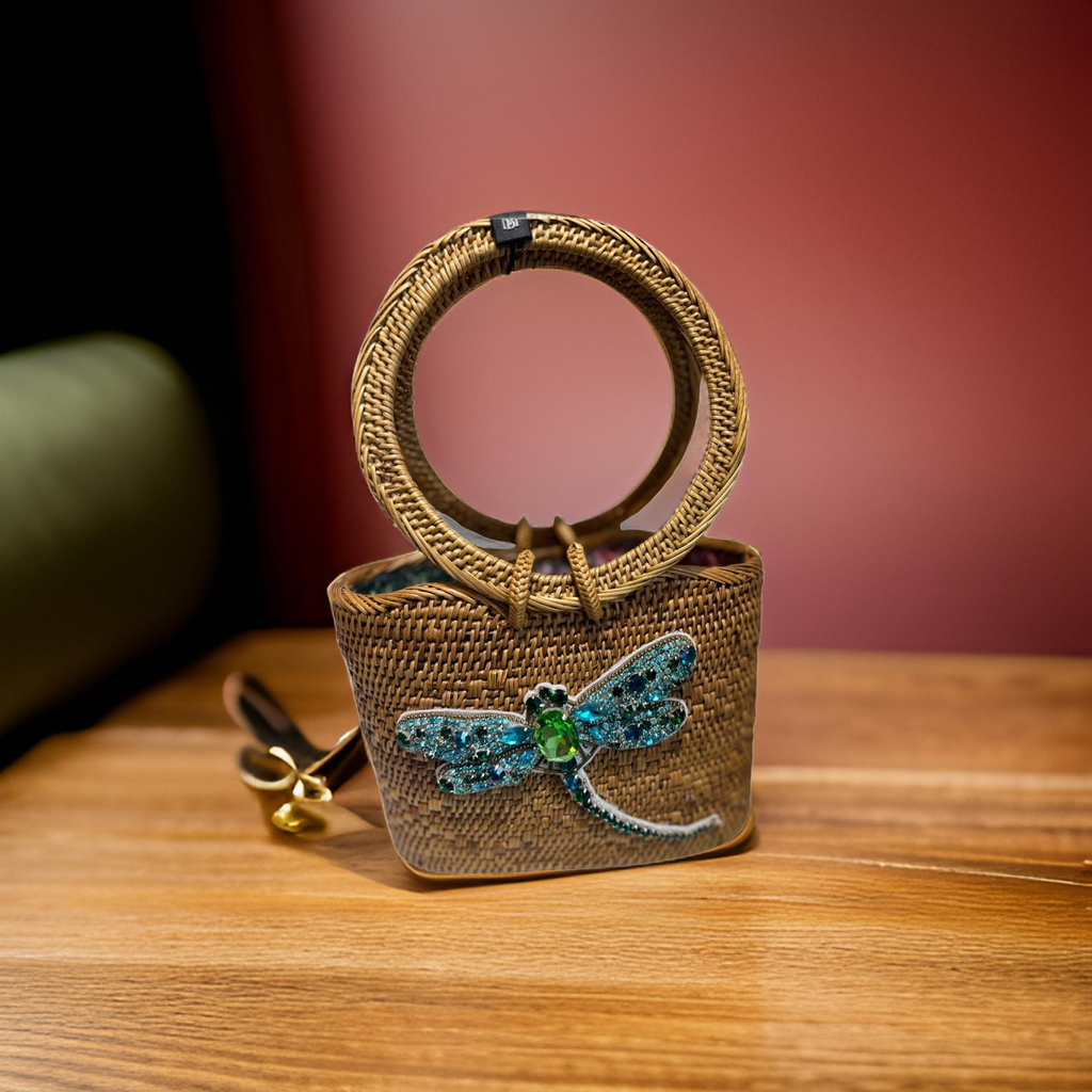 The Twilight Dragonfly brings an enchanting touch with its delicate dragonfly embroidery and subtle rhinestone embellishments. Handwoven from Ata grass and smoked to perfection, this bag radiates a natural charm that complements the intricate design.